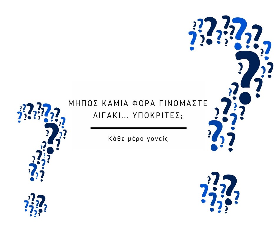 Πιάνω πολλές φορές τον εαυτό μου να λέω πράγματα στα παιδιά μου που αν τα έλεγαν και πολύ περισσότερο αν τα απαιτούσαν από μένα, δεν είμαι καθόλου σίγουρη πως θα συναινούσα. Κι ενώ καταλαβαίνω πως είμαστε οι γονείς τους και οφείλουμε να τους μάθουμε κάποια πράγματα, να τους γνωρίσουμε τον κόσμο και να τα αφήσουμε να τον ανακαλύψουν, να κάνουμε το καλύτερο για αυτά και να φροντίσουμε να είναι ασφαλή, μήπως καμιά φορά γινόμαστε λιγάκι… υποκριτές;