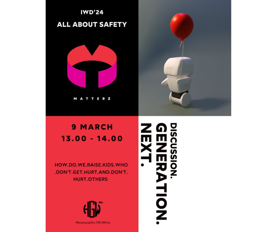 Με αφορμή την Παγκόσμια Ημέρα της Γυναίκας, και τον Μήνα της Γυναικείας Ιστορίας, το Matterz, ένα νέο και καινοτόμο ψηφιακό οικοσύστημα με αντικείμενο την δημιουργία ενός ασφαλέστερου και συμπεριληπτικού περιβάλλοντος για όλα τα άτομα, διοργανώνει το διήμερο event “All About Safety” το Σάββατο 9 και την Κυριακή 10 Μαρτίου, δίνοντας βήμα και χώρο σε όλες τις θηλυκότητες, με σκοπό να ενδυναμώσει, να εκπαιδεύσει και φυσικά να δημιουργήσει ένα αυθεντικό safe space για όλα.