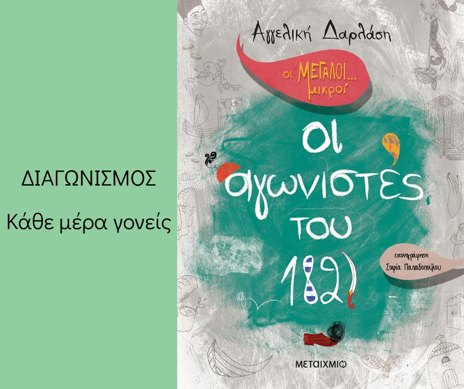Χαρίζουμε σε δύο φίλους του Κάθε μέρα γονείς, το καινούριο βιβλίο της Αγγελικής Δαρλάση Οι αγωνιστές του 1821, που κυκλοφορεί από τις Εκδόσεις Μεταίχμιο. Για να δηλώσετε συμμετοχή συμπληρώνετε τη φόρμα που ακολουθεί.