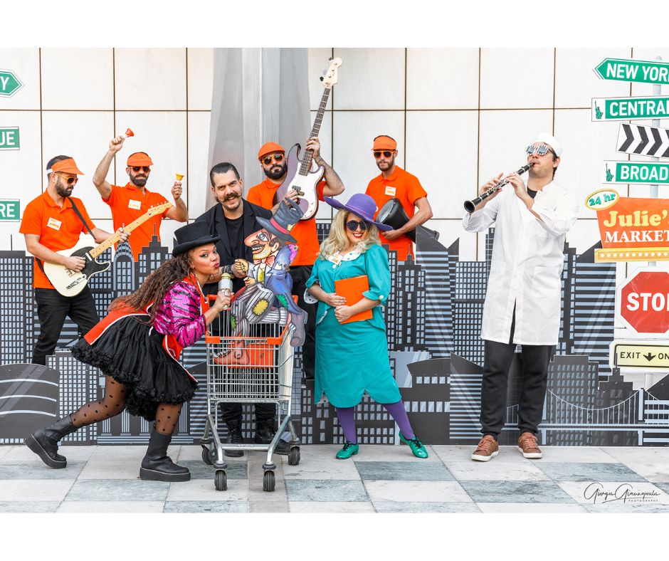Τον Καραγκιόζη συντροφεύουν στο ταξίδι του στην αμερικανική μεγαλούπολη οι μουσικοί: Δημήτρης Σχίζας (κιθάρα), Γιώργος Κουρέλης (πλήκτρα), Γιώργος Πουλιάσης (τύμπανα), Μάρκο Γκρινόβερ (μπάσο), Χρήστος Παπαδόπουλος (κλαρίνο).