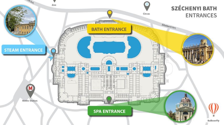 Θα φτάσετε στα λουτρά με λεωφορείο ή μετρό (σταθμός Μ1 Metro Station Szechenyi Furdo).