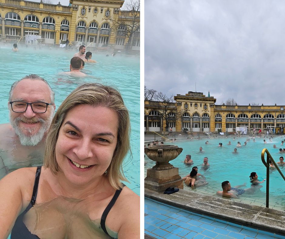 Τα θερμά λουτρά Szechenyi βρίσκονται στο πάρκο της πόλης και υπόσχονται μια μοναδική εμπειρία χαλάρωσης. Οι πολυτελείς εγκαταστάσεις των λουτρών χτίστηκαν το 1913 και είναι τα μεγαλύτερα στην Ευρώπη. Οι ιαματικές πηγές των λουτρών τροφοδοτούν συνολικά 21 πισίνες, εσωτερικές και εξωτερικές, διαφορετικές σε μέγεθος αλλά και σε θερμοκρασία νερού. Στις εγκαταστάσεις μπορείς επίσης να απολαύσεις κι άλλες υπηρεσίες, με επιπλέον χρέωση, όπως μασάζ, σάουνα, ατμόλουτρα κ.α.
