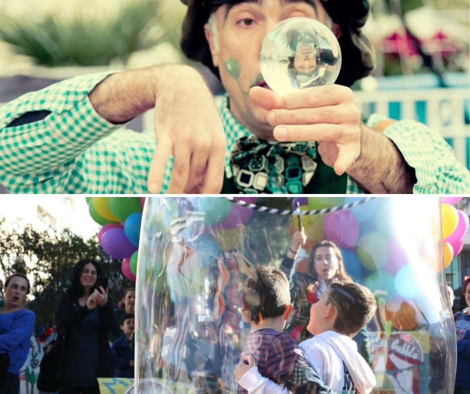 Στο Bubble Show, μικροί και μεγάλοι μπαίνουν σε έναν ονειρικό κόσμο όπου όλα μεταμορφώνονται. Οι θεατές γίνονται συν-δημιουργοί ενός φευγαλέου κόσμου φτιαγμένου από αγάπη, νερό και σαπούνι. Με χειροποίητα εργαλεία και απρόσμενα αντικείμενα της καθημερινότητας, δημιουργούνται μικρές, μεσαίες και τεράστιες σαπουνόφουσκες που πετούν και ταξιδεύουν. Στο τέλος, όλοι μπορούν να μπουν μέσα σε μια τεράστια φούσκα!