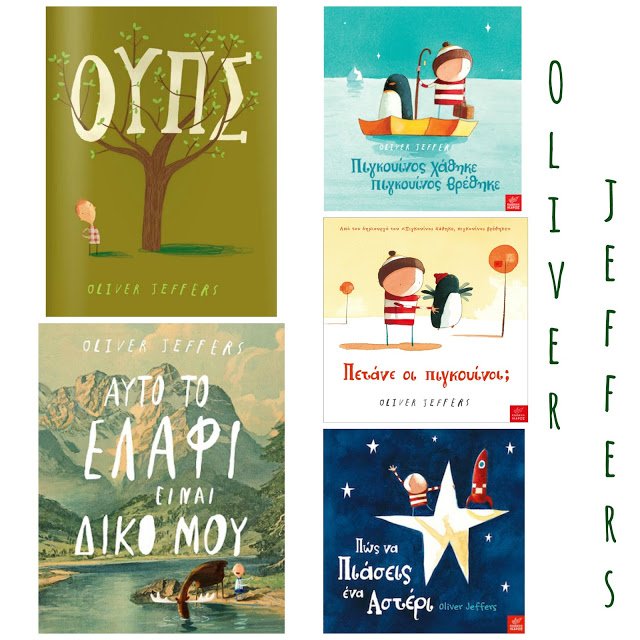 Ο Oliver Jeffers γεννήθηκε στο Belfast, όμως ζει και εργάζεται στο Brooklyn. Είναι ζωγράφος αλλά εμείς τον γνωρίσαμε μέσα από τα πολυβραβευμένα του βιβλία. Του αρέσει να δημιουργεί εικόνες, άλλοτε φανταστικές και άλλοτε εμπνευσμένες από αληθινά περιστατικά. Τα σχέδιά του έχουν μια μοναδική παιδικότητα! Οι ιστορίες του παίζουν ανάμεσα στο πραγματικό και το φανταστικό, προκαλώντας τόσο τα παιδιά όσο και τους ενήλικες που τα διαβάζουν να κριτικάρουν την αντίληψη που έχουν για τον κόσμο και τα πράγματα.