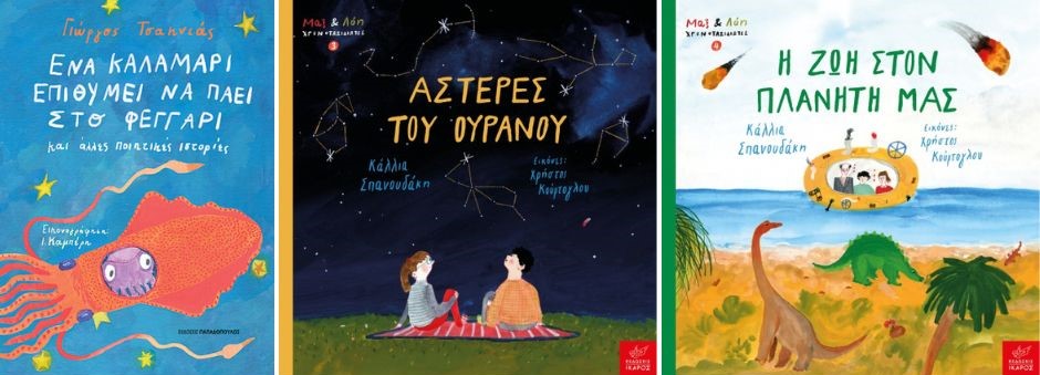 Στη σειρά Μαξ & Λόη – Χρονοταξιδιώτες, από τις Εκδόσεις Ίκαρος, κυκλοφορούν το 3ο και 4ο βιβλίο Αστέρες του ουρανού και Η ζωή στον πλανήτη μας. Η συγγραφέας Κάλλια Σπανουδάκη και ο εικονογράφος Χρήστος Κούρτογλου, δημιουργούν 2 ακόμη εξαιρετικά βιβλία γνώσεων για παιδιά 5+ ετών. Συντροφιά με τους πρωταγωνιστές τα παιδιά γνωρίζουν τον κόσμο από την αρχή του έως τις μέρες μας. Στο τέλος των βιβλίων θα βρείτε παιχνίδια και δραστηριότητες.