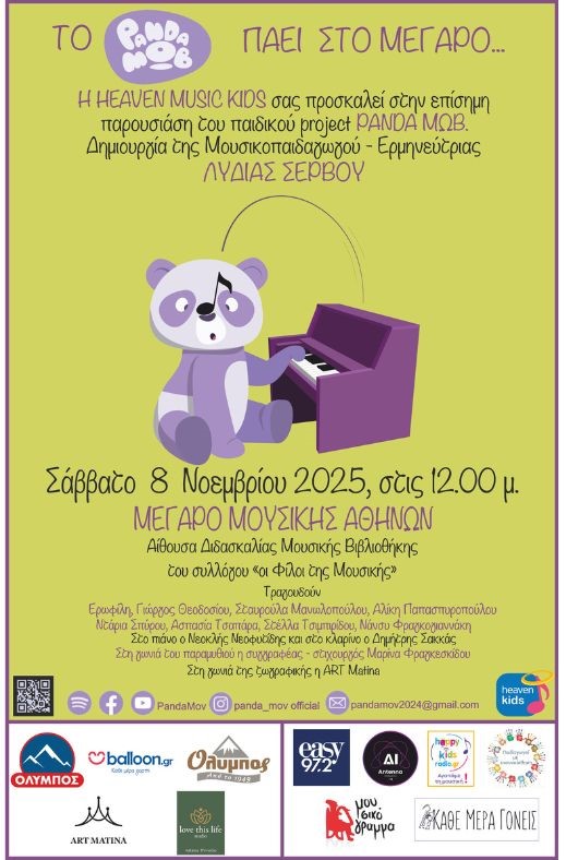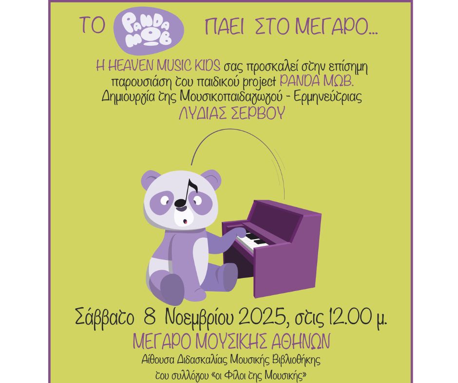 Το PandaΜωβ πάει στο Μέγαρο… και η HEAVEN MUSIC KIDS σας προσκαλεί στην επίσημη παρουσίαση, το Σάββατο 8 Νοεμβρίου.