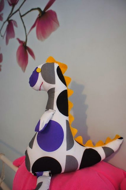 και μαμά Τίνα (επισκεφθείτε το blog της για περισσότερες φωτογραφίες από την δουλειά της) μας χαρίζει ένα δεινοσαυράκι από απαλό βαμβακερό