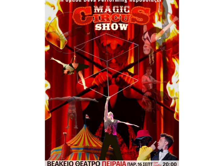 MaGic CiRcus Show, ένα σύγχρονο circus variete show, την Παρασκευή 16 Σεπτεμβρίου στις 20:00 στο Βεάκειο θέατρο Πειραιά. Ο σκηνοθέτης Αντώνης Πασβάντης δημιουργεί ένα σύγχρονο...