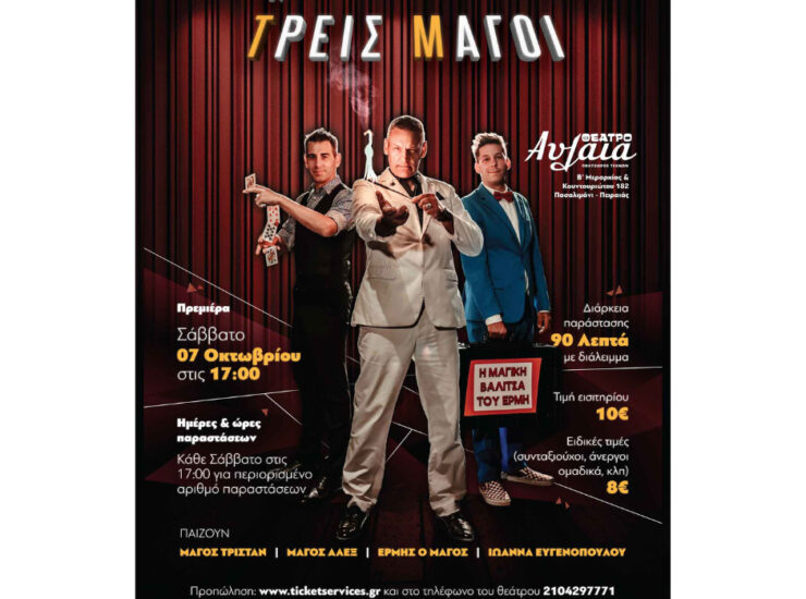 5 αναγνώστες θα κερδίσουν από μια διπλή πρόσκληση για την παράσταση Οι Τρεις Μάγοι, το Σάββατο 14/10 στις 17:00, στο Θέατρο Αυλαία. Για παιδιά 2+...