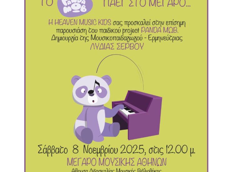 Το PandaΜωβ πάει στο Μέγαρο by Κάθε μέρα γονείς 20 Οκτωβρίου SHARE Facebook Twitter Pinterest Το PandaΜωβ πάει στο Μέγαρο… και η HEAVEN MUSIC KIDS σας προσκαλεί στην επίσημη παρουσίαση, το Σάββατο 8 Νοεμβρίου. Το Κάθε μέρα γονείς είναι χορηγός... Read More →
