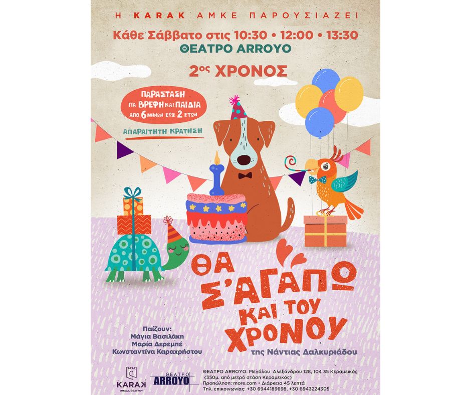 Συνεχίζεται για δεύτερη χρονιά η παράσταση για βρέφη «Θα σ’ αγαπώ και του χρόνου». Από 11/10 στο θέατρο ARROYO.