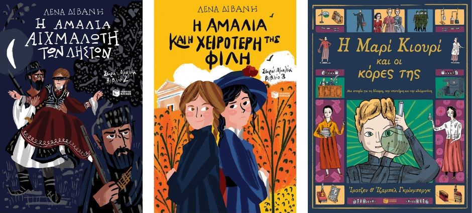Η Λένα Διβάνη και η Αμαλία μας παρασέρνουν σε δύο ακόμη περιπέτειες: “Η Αμαλία αιχμάλωτη των ληστών” και “Η Αμαλία και η χειρότερή της φίλη” (Εκδόσεις Πατάκη). Ιστορίες για μια εποχή όπου τα κορίτσια είχαν ελάχιστες ελευθερίες κι έμεναν στο σπίτι, φροντίζοντας την οικογένεια. Όχι όμως η Αμαλία…
