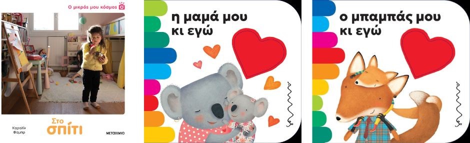 Ό μικρός μου κόσμος – Στο σπίτι κυκλοφορεί από τις Εκδόσεις Μεταίχμιο και είναι ένα όμορφο καρτονέ βιβλίο που αξιοποιεί φωτογραφίες για την άσκηση των δεξιοτήτων του μικρού παιδιού και τη γνωριμία του με το περιβάλλον στο οποίο μεγαλώνει. (Μετάφραση: ΜαρίαΓιδάκη)