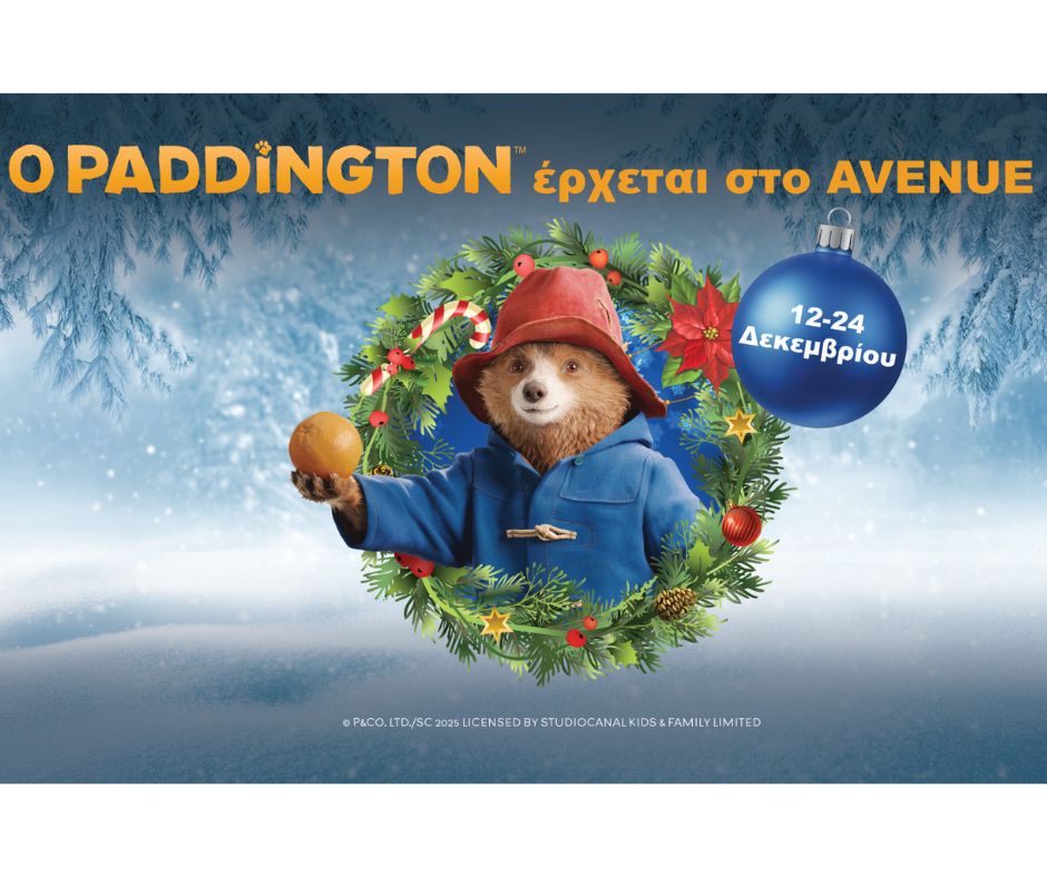 Καθώς ο Δεκέμβριος προχωρά, το AVENUE κορυφώνει τη γιορτινή του ατμόσφαιρα με μια μεγάλη έκπληξη για τα παιδιά: την πρώτη επίσκεψη του αγαπημένου αρκούδου από το Λονδίνο, του Paddington! Από τις 12 έως τις 24 Δεκεμβρίου, ο Paddington θα βρίσκεται στο εμπορικό κέντρο για να γνωρίσει από κοντά τους μικρούς του φίλους και να μοιραστεί μαζί τους το γιορτινό του κέφι.